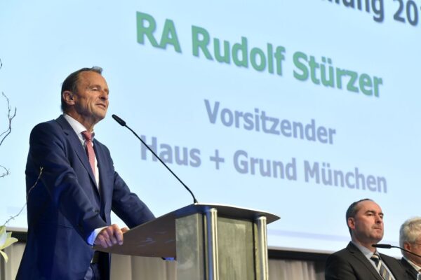Im bis auf den letzten Platz besetzten Festsaal des Löwenbräukellers berichtete der Vorsitzende Rudolf Stürzer, Mitglieder antworteten auf die Frage nach dem Grund für ihren Beitritt zum Verein immer häufiger: „Kennen Sie einen Politiker oder eine Partei, die sich bei den Diskussionen über immer noch mehr Mieterschutz für die Rechte von Eigentümern und Vermietern stark macht?“.