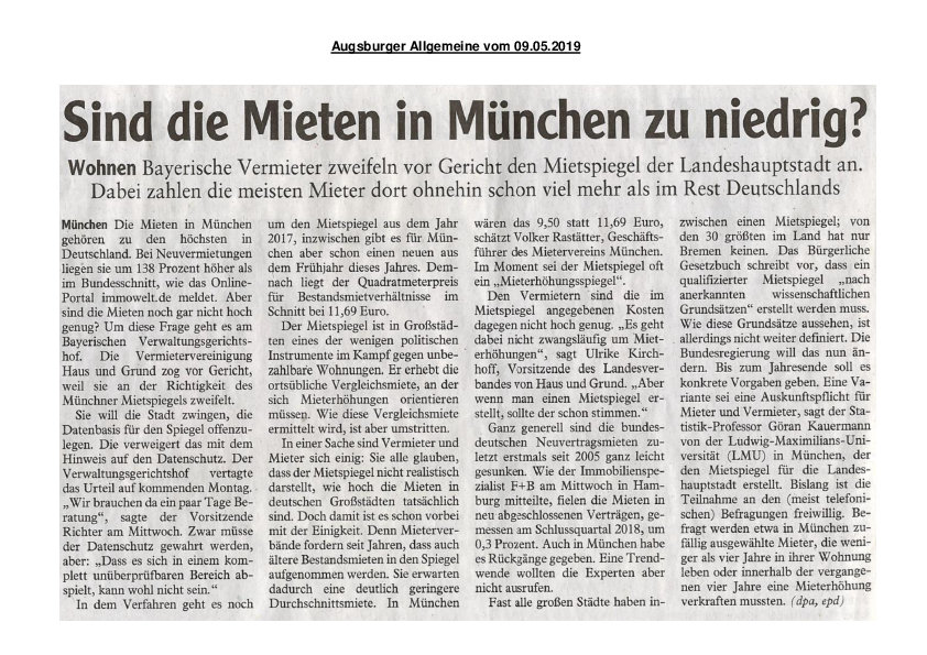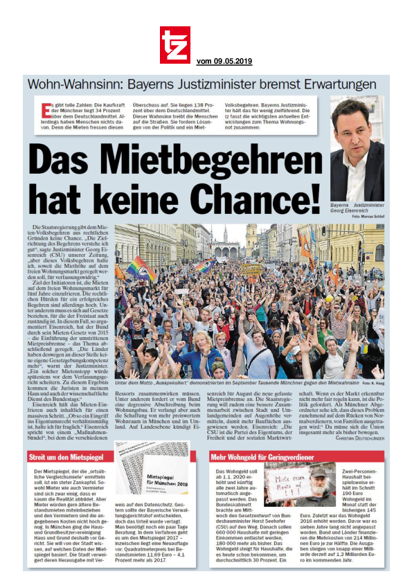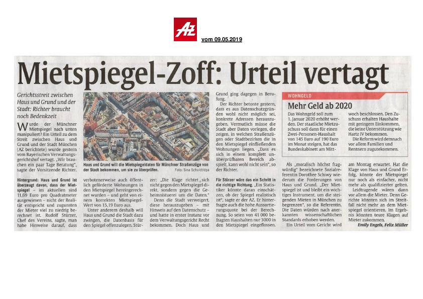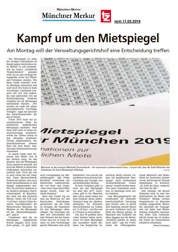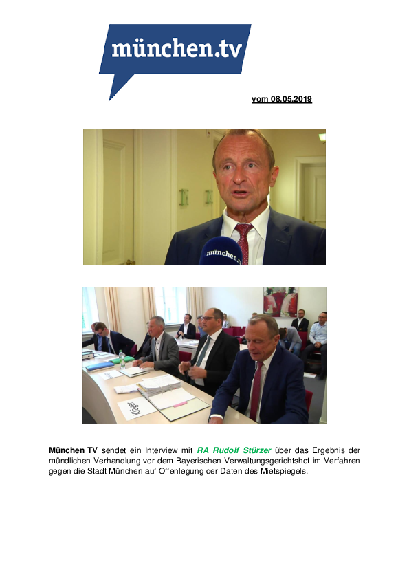 München TV sendet ein Interview mit RA Rudolf Stürzer über das Ergebnis der mündlichen Verhandlung vor dem Bayerischen Verwaltungsgerichtshof im Verfahren gegen die Stadt München auf Offenlegung der Daten des Mietspiegels.