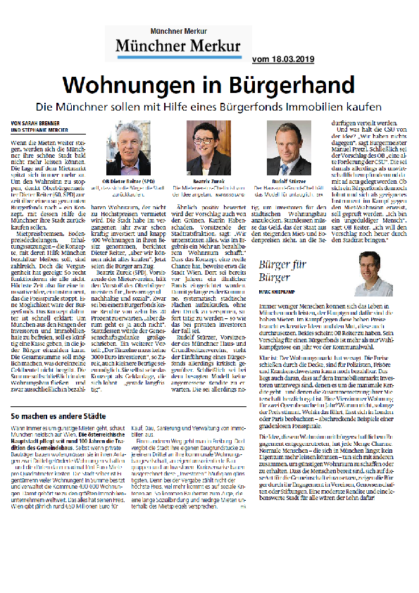 Die Münchner sollen mit Hilfe eines Bürgerfonds Immobilien kaufen