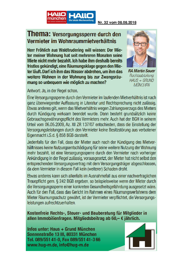 Versorgungssperre durch den Vermieter im Wohnraummietverhältnis