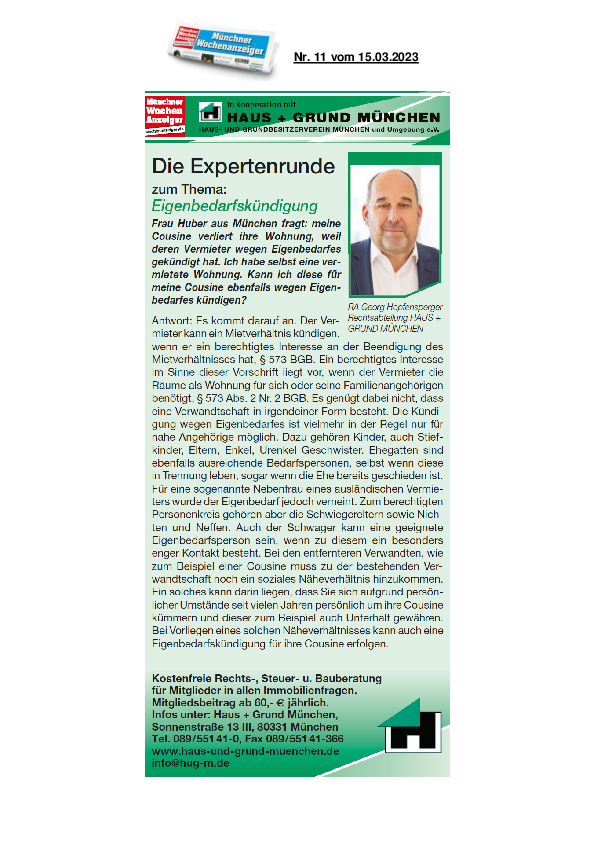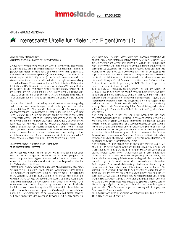 Vorgetäuschter Eigenbedarf - Vermieter muss auch Kosten des Detektivs zahlen // Untervermietung – Aufnahme von Flüchtlingen ist kein berechtigtes Interesse // Betriebskostenabrechnung – Fristlose Kündigung bei Fälschung durch den Mieter // Die „mietpreisbremsfreie“ Mieterhöhung
