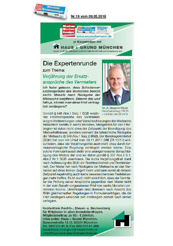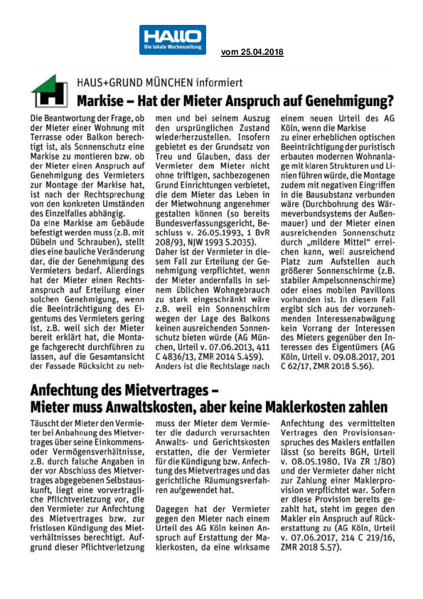 Markise – Anspruch auf Genehmigung? // Anfechtung des Mietvertrages – Mieter muss Anwaltskosten, aber keine Maklerkosten zahlen