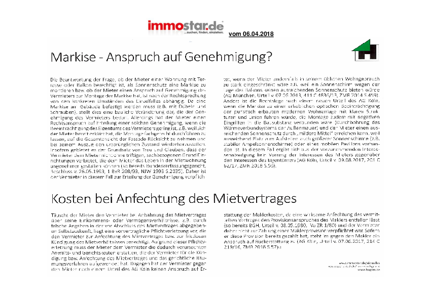 Markise – Anspruch auf Genehmigung? // Kosten bei Anfechung des Mietvertrages