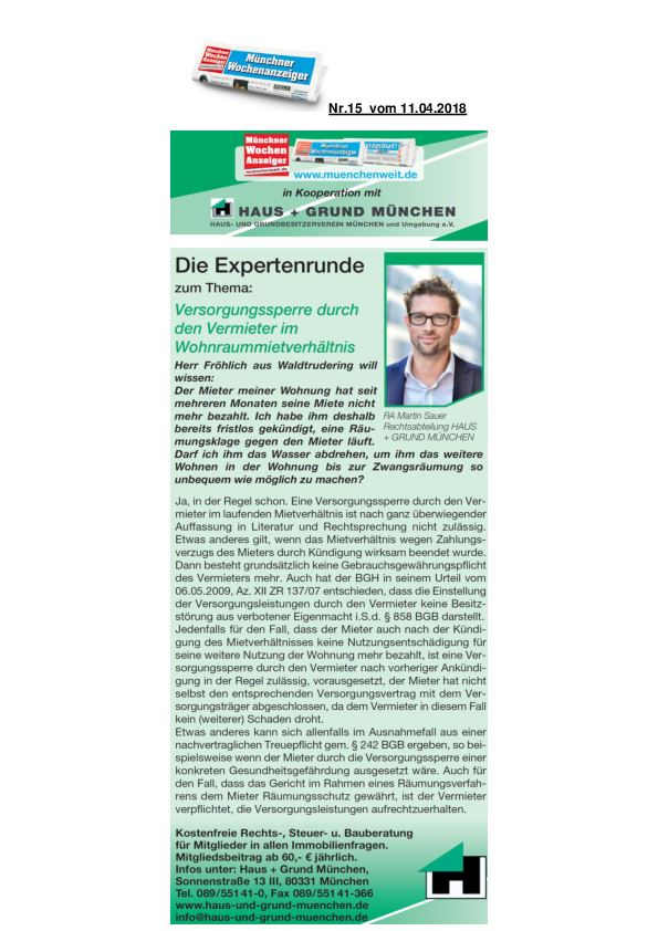 Versorgungssperre durch den Vermieter im Wohnraummietverhältnis