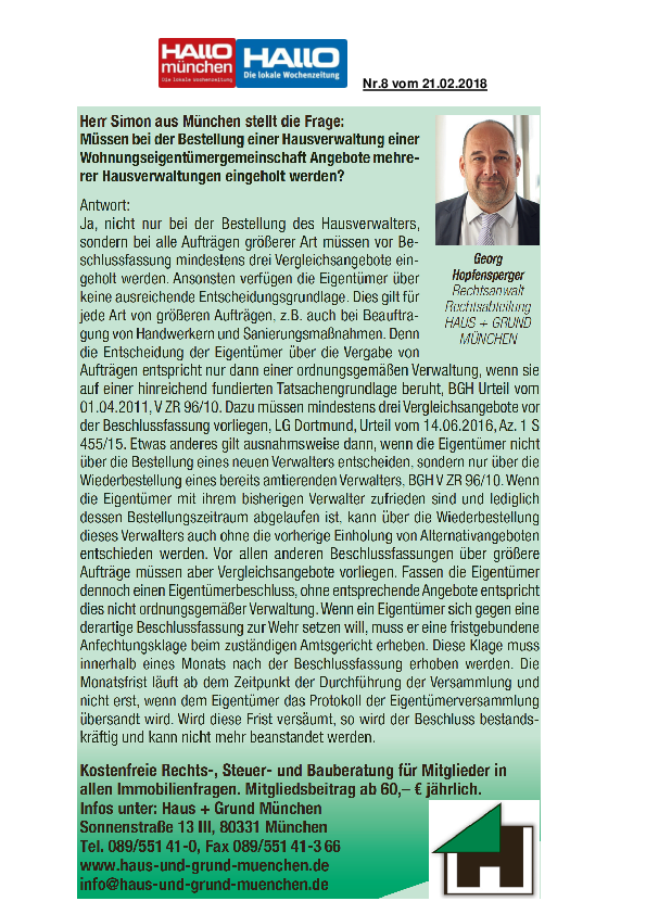 Müssen bei der Bestellung einer Hausverwaltung einer WEG Angebote mehrerer Hausverwaltungen eingeholt werden?