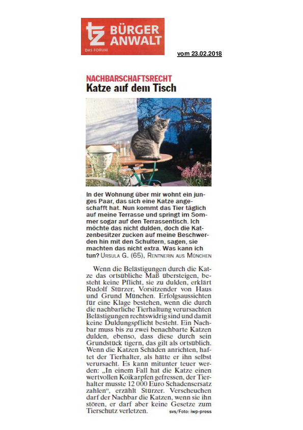 Nachbarschaftsrecht: Katze auf dem Tisch