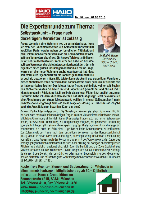 Selbstauskunft – Frage nach derzeitigem Vermieter ist zulässig