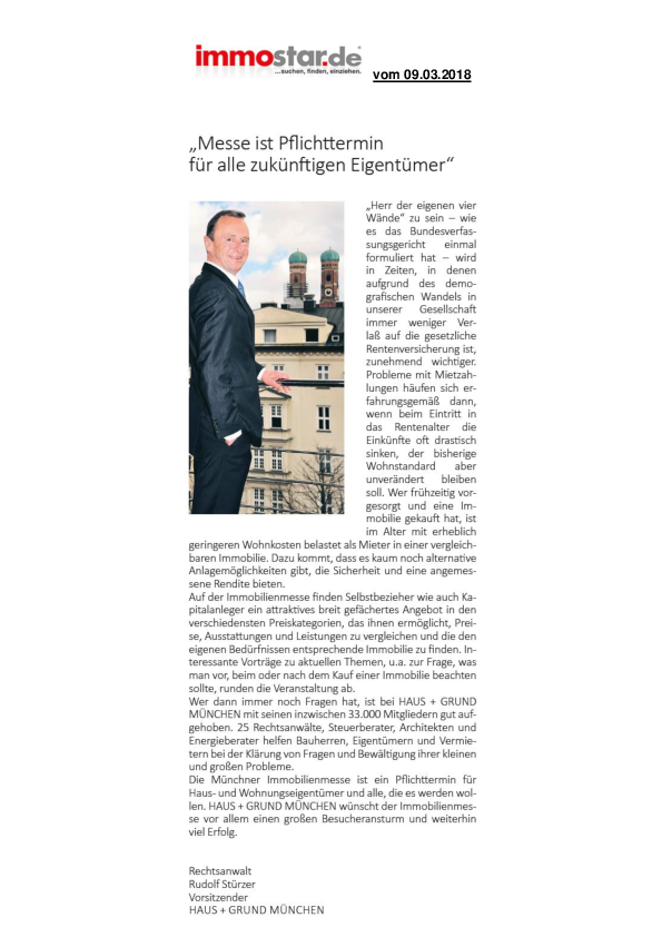 Grußworte zur Immobilien-Messe / Mietrückstände / Kündigung / Gartenpflege
