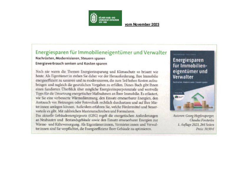 RA Rudolf Stürzer beantwortet in einer Telefon-Aktion der Zeitschrift „Frau im Trend“ Leserfragen zur Neufassung des Gebäudeenergiegesetzes.