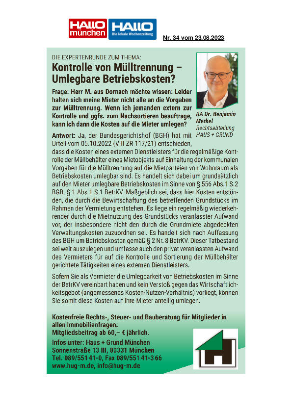 Kontrolle von Mülltrennung – Umlegbare Betriebskosten?