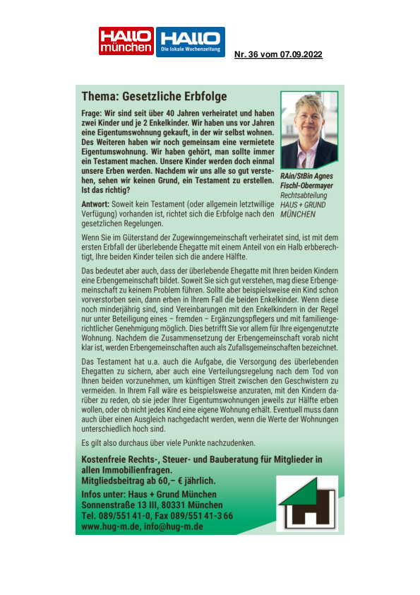 Auszeichnung Haus + Grund München