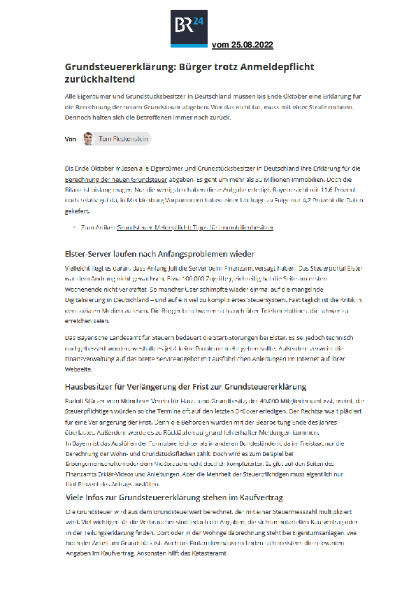 Grundsteuererklärung: Bürger trotz Anmeldepflicht zurückhaltend