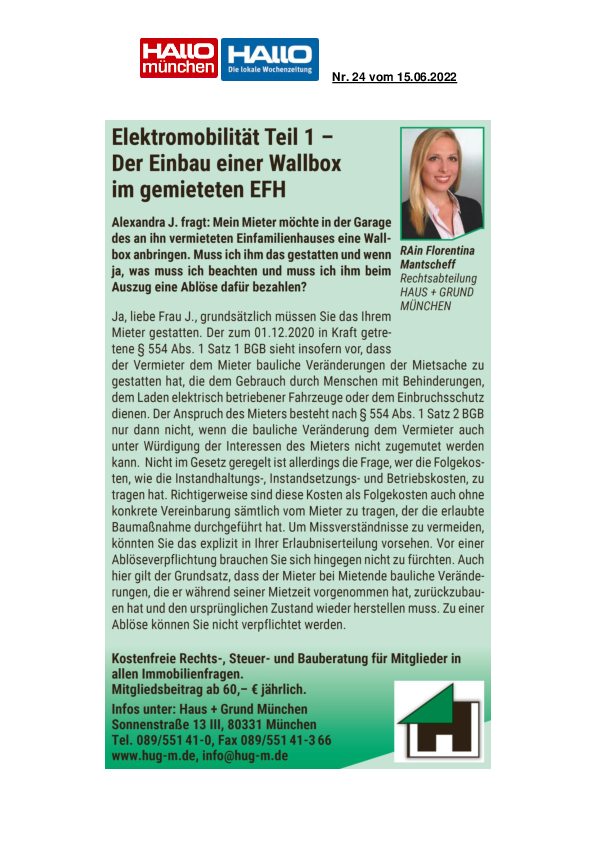 Der Einbau einer Wallbox îm gemieteten Einfamilienhaus