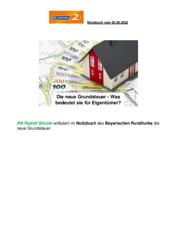 RA Rudolf Stürzer erläutert im Notizbuch des Bayerischen Rundfunks die neue Grundsteuer.