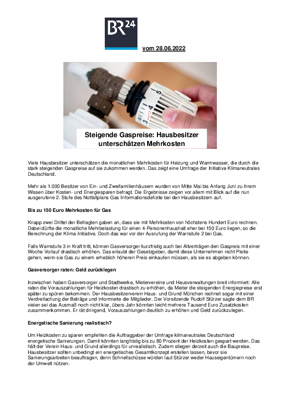 Steigende Gaspreise: Hausbesitzer unterschätzen Mehrkosten