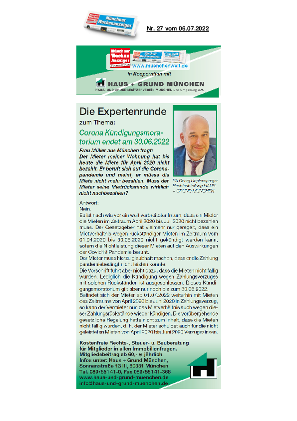 Corona Kündigungsmoratorium endet am 30.06.2022