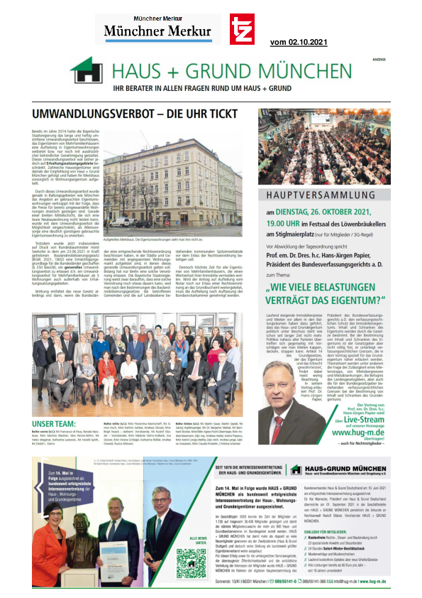 Umwandlungsverbot - die Uhr tickt // Jahreshauptversammlung 2021 // Auszeichnung als bundesweit erfolgreichste Interessenvertretung