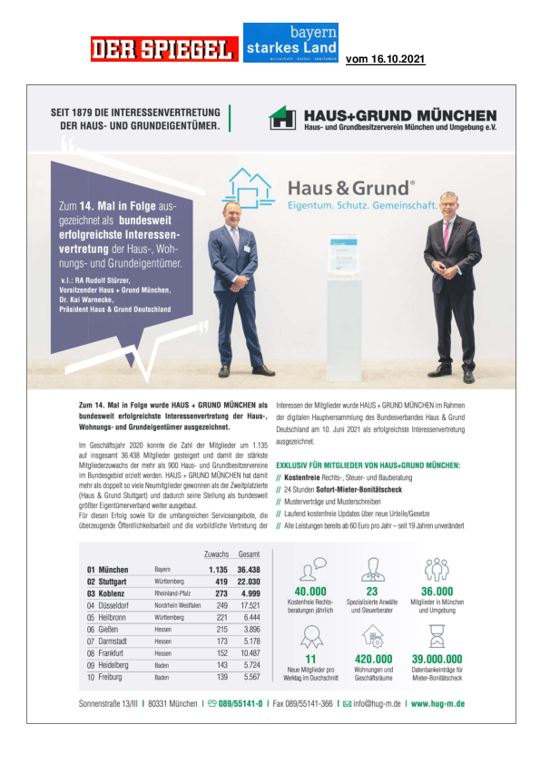 Auszeichnung HAUS + GRUND MÜNCHEN
