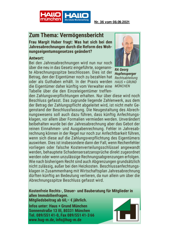 Vermögensbericht / Jahresabrechnungen