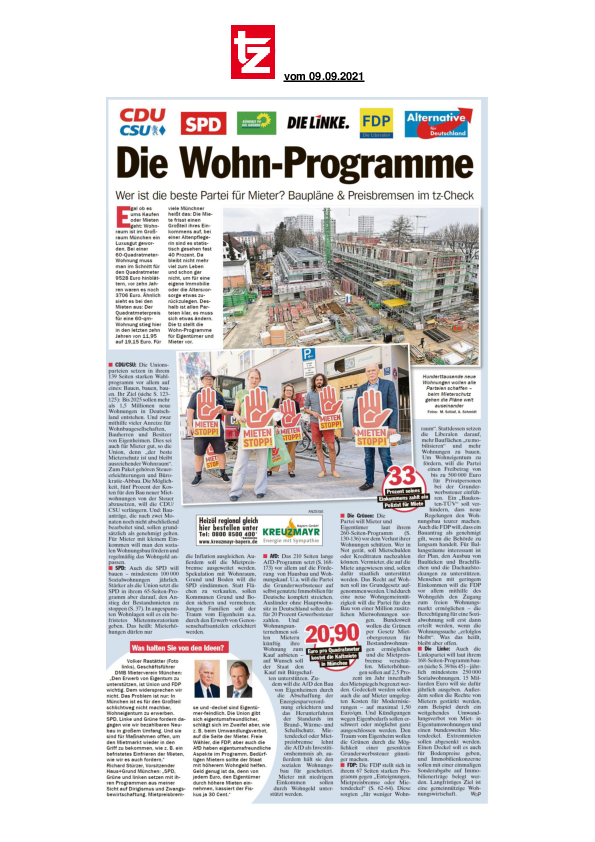 Wer ist die beste Partei für Mieter? Baupläne & Preisbremsen im tz-Check
