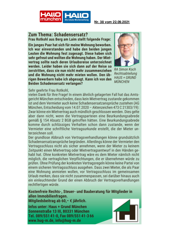 Schadensersatz?