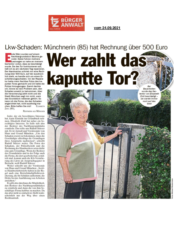 Lkw-Schaden: Münchnerin (85) hat Rechnung über 500 Euro
