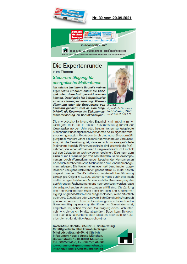 Steuerermäßigung für energetische Maßnahmen