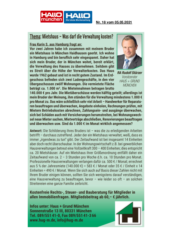 Mietshaus – Was darf die Verwaltung kosten?