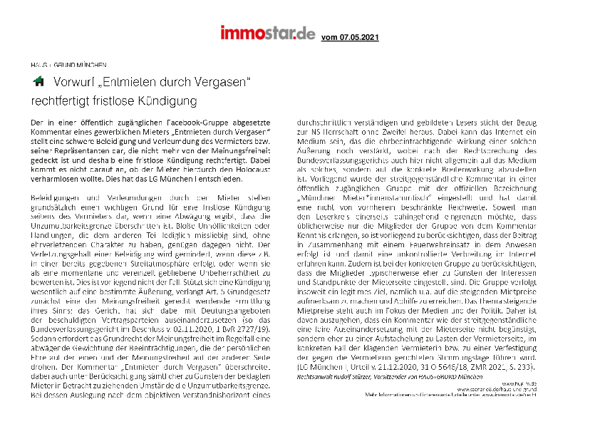 Vorwurf „Entmieten durch Vergasen“ rechtfertigt fristlose Kündigung