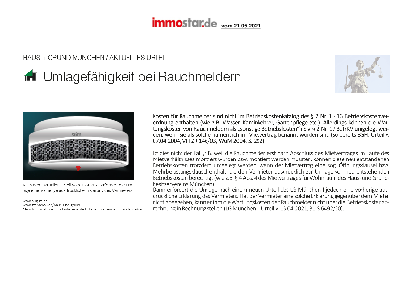Umlagefähigkeit bei Rauchmeldern