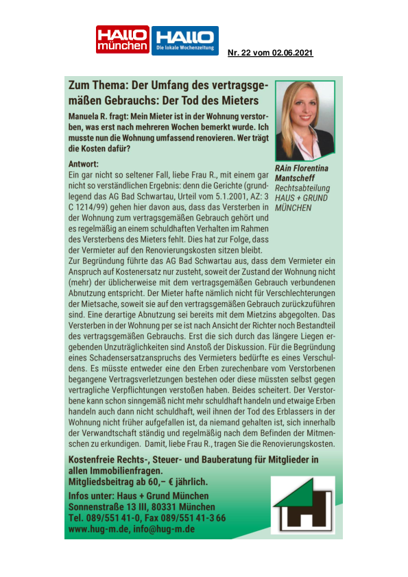 Der Umfang des vertragsgemäßen Gebrauchs: Der Tod des Mieters