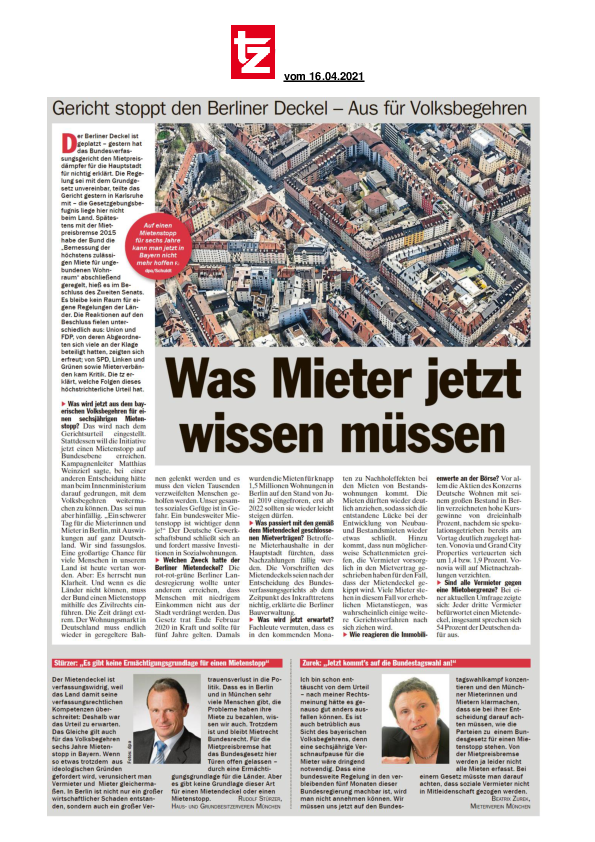 Das Verfassungsgerichts hat den Berliner Mietpreisdeckel für nicht rechtens erklärt. Welche Auswirkungen das auf den Wohnungsmarkt in Bayern hat, speziell in Deutschlands teuerster Stadt