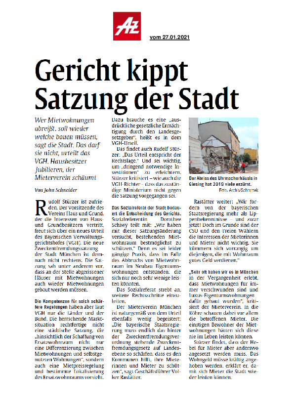 Wer Mietwohnungen abreißt, soll wieder welche bauen müssen, sagt die Stadt. Das darf sie nicht, urteilt das VGH. Hausbesitzer jubilieren, der Mieterverein schäumt