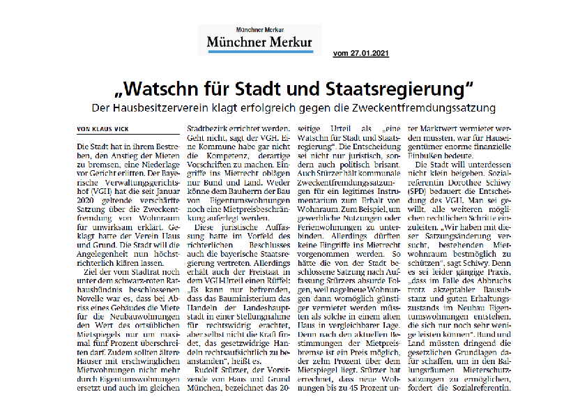 Der Hausbesitzerverein klagt erfolgreich gegen die Zweckentfremdungssatzung