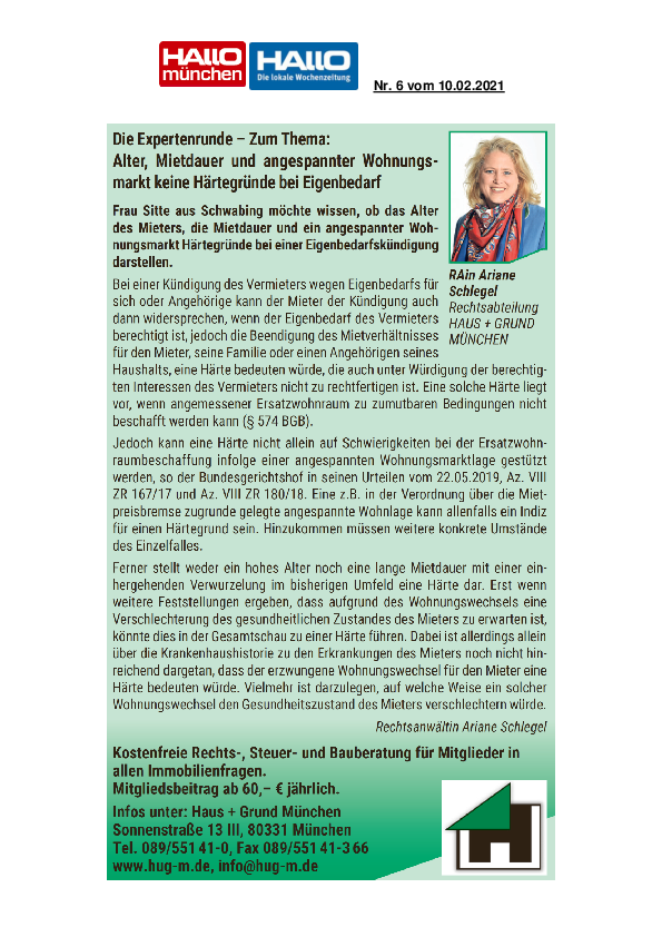 Alter, Mietdauer und angespannter Wohnungsmarkt keine Härtegründe bei Eigenbedarf