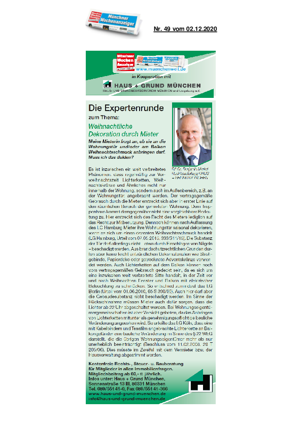 Weihnachtliche Dekoration durch Mieter
