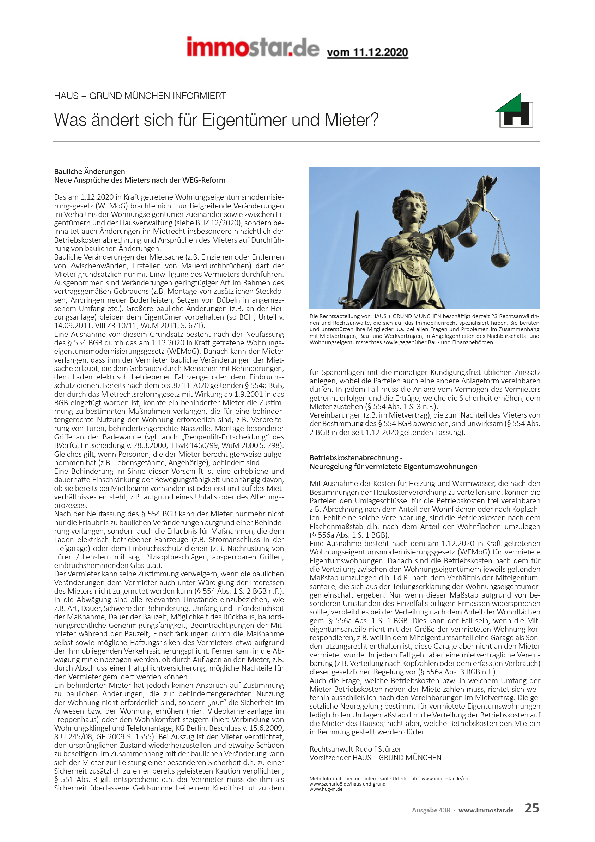 Bauliche Änderungen - Neue Ansprüche des Mieters nach der WEG-Reform // Betriebskostenabrechnung - Neuregelung für vermietete Eigentumswohnungen