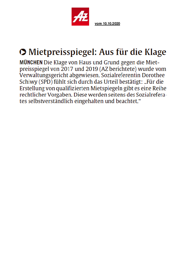 Mietpreisspiegel: Aus für die Klage