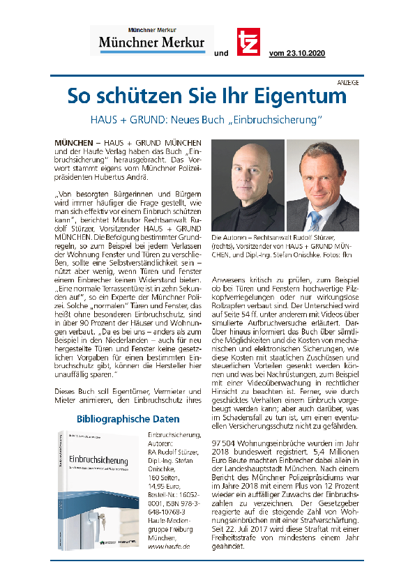 HAUS + GRUND: Neues Buch "Einbruchsicherung"