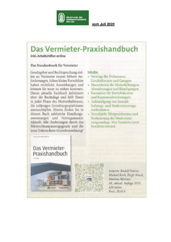 Infos und Urteile für Eigentümer und Mieter: Anbringung von Markisen an Mietwohnungen - mit oder ohne Genehmigung des Vermieters? // Dachsanierung leicht gemacht: Welche Förderungen für Eigenheimbesitzer möglich sind // Bußgelder bei Nicht-Vorlage des Energieausweises // KfW-Förderung und Co. Wie Wohnungseigentümergemeinschaften Vorteile nutzen können // Strom - und Gaskosten - Eigentümer haftet nicht für Rückstände des Mieters // Betriebskosten - Beweislastverteilung bei ungewöhnlich hohem Verbrauch // Betriebskostenabrechnung - Keine Besonderheiten bei großen Anlagen