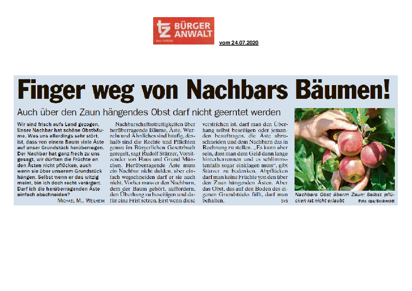 Auch über den Zaun hängendes Obst darf nicht geerntet werden