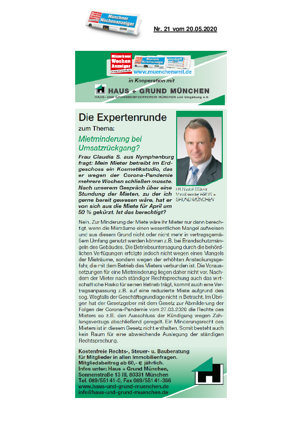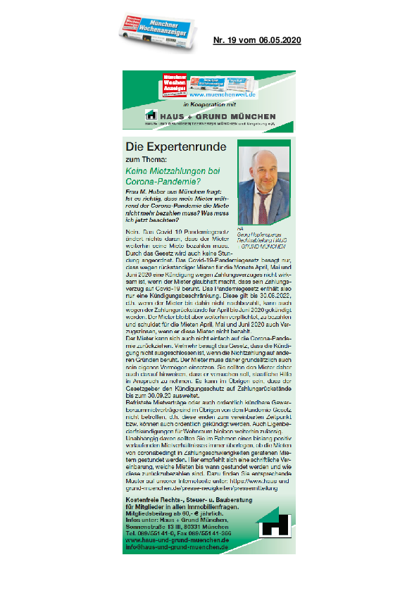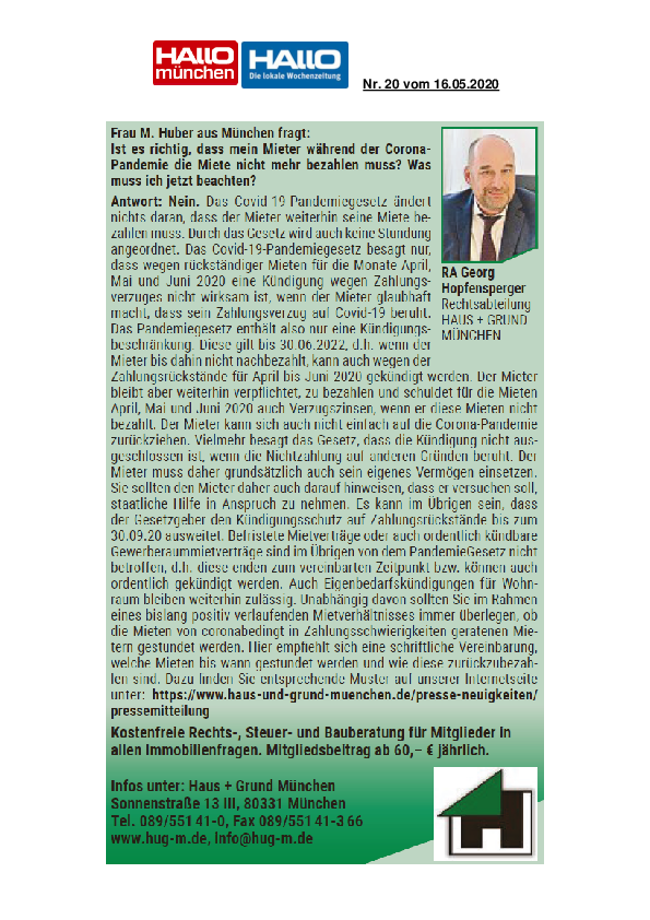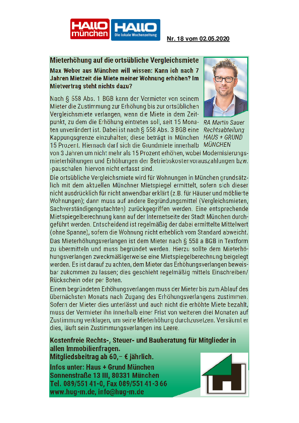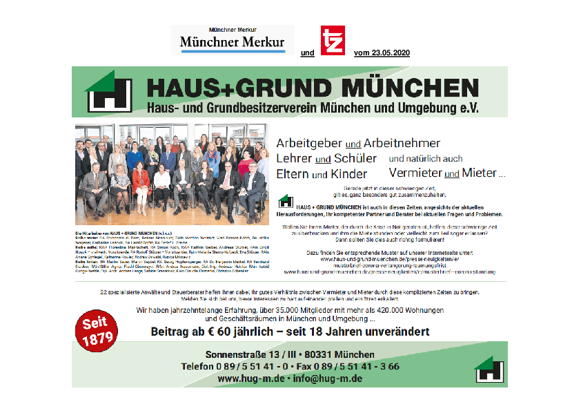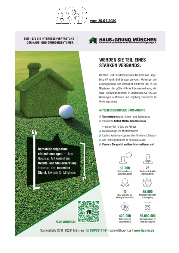 Anzeige HAUS + GRUND MÜCHEN e.V.
