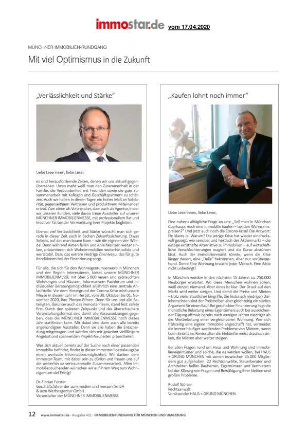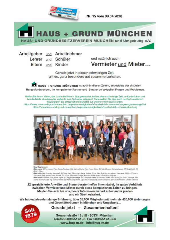 HAUS + GRUND MÜNCHEN ist auch in diesen Zeiten, angesichts der aktuellen Herausforderungen, Ihr kompetenter Partner und Berater bei aktuellen Fragen und Problemen.