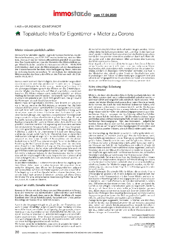 Topaktuelle Infos für Eigentümer + Mieter zu Corona