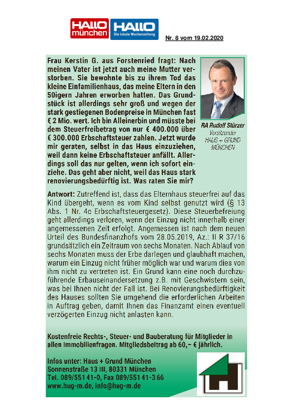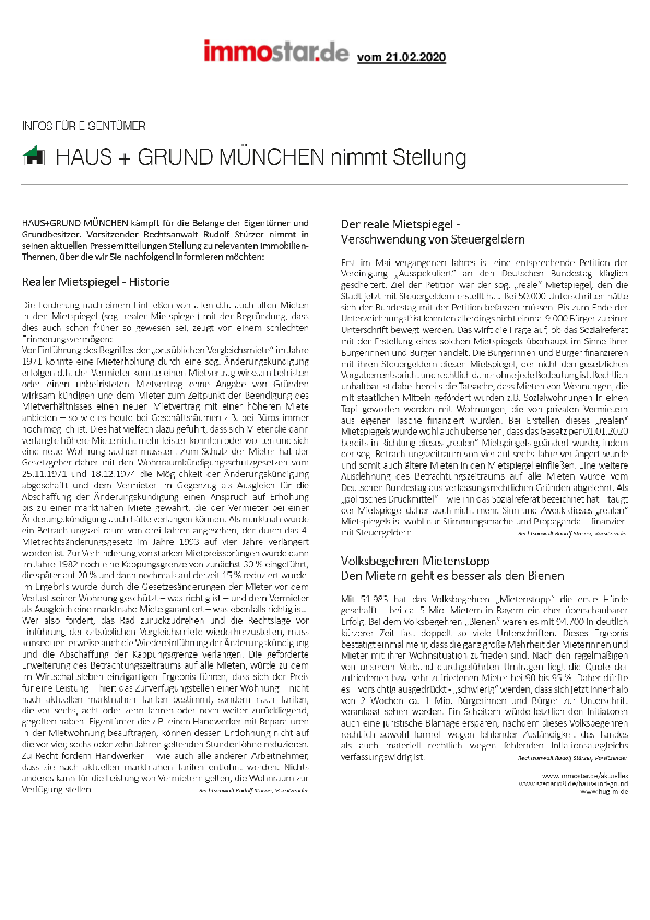 HAUS + GRUND MÜNCHEN nimmt Stellung