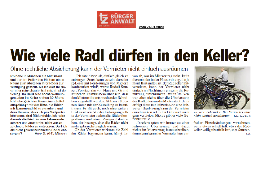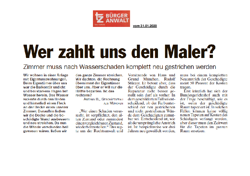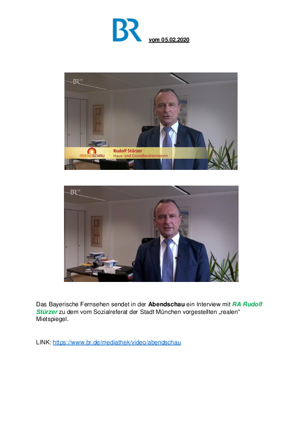 Das Bayerische Fernsehen sendet in der Abendschau ein Interview mit RA Rudolf Stürzer zu dem vom Sozialreferat der Stadt München vorgestellten „realen“ Mietspiegel.