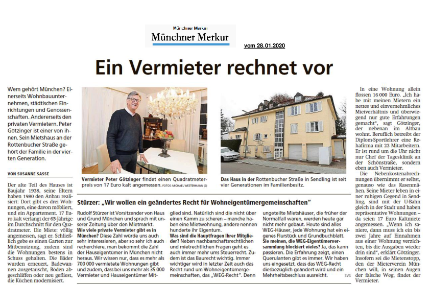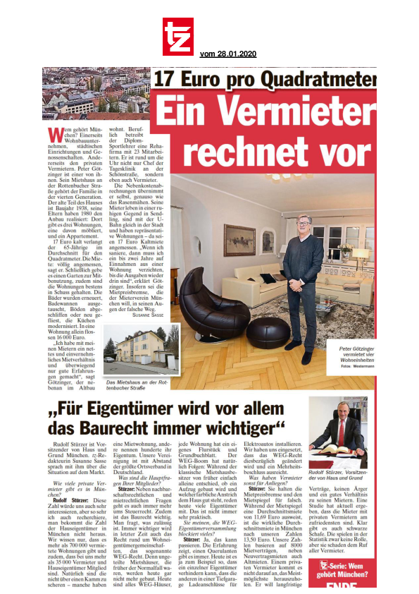 Wem gehört München? Einerseits Wohnbauunternehmen, städtischen Einrichtigungen und Genossenschaften. Andererseits den privaten Vermietern. Peter Götzinger ist einer von ihnen.