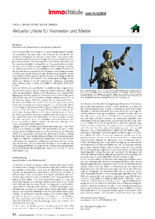 Kündigung - Produktion von Pornos kein vertragswidriger Gebrauch // Mietminderung wegen Baulärm in der Nachbarschaft?