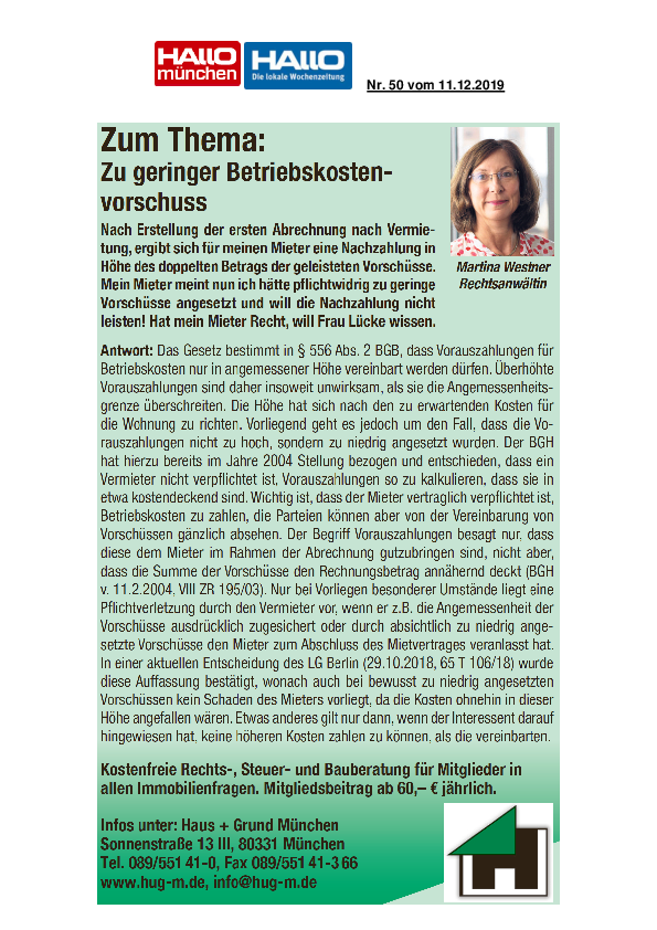 Zu geringer Betriebskostenvorschuss