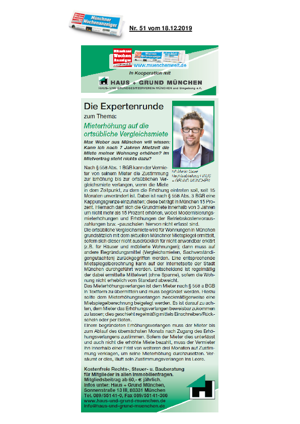 Mieterhöhung auf die ortsübliche Vergleichsmiete